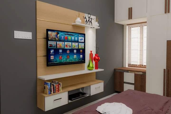 TEL: 03111100230 New Design Launch - Beautiful Wall mounted entertainment unit. In polish material. Size 6x6 feet.